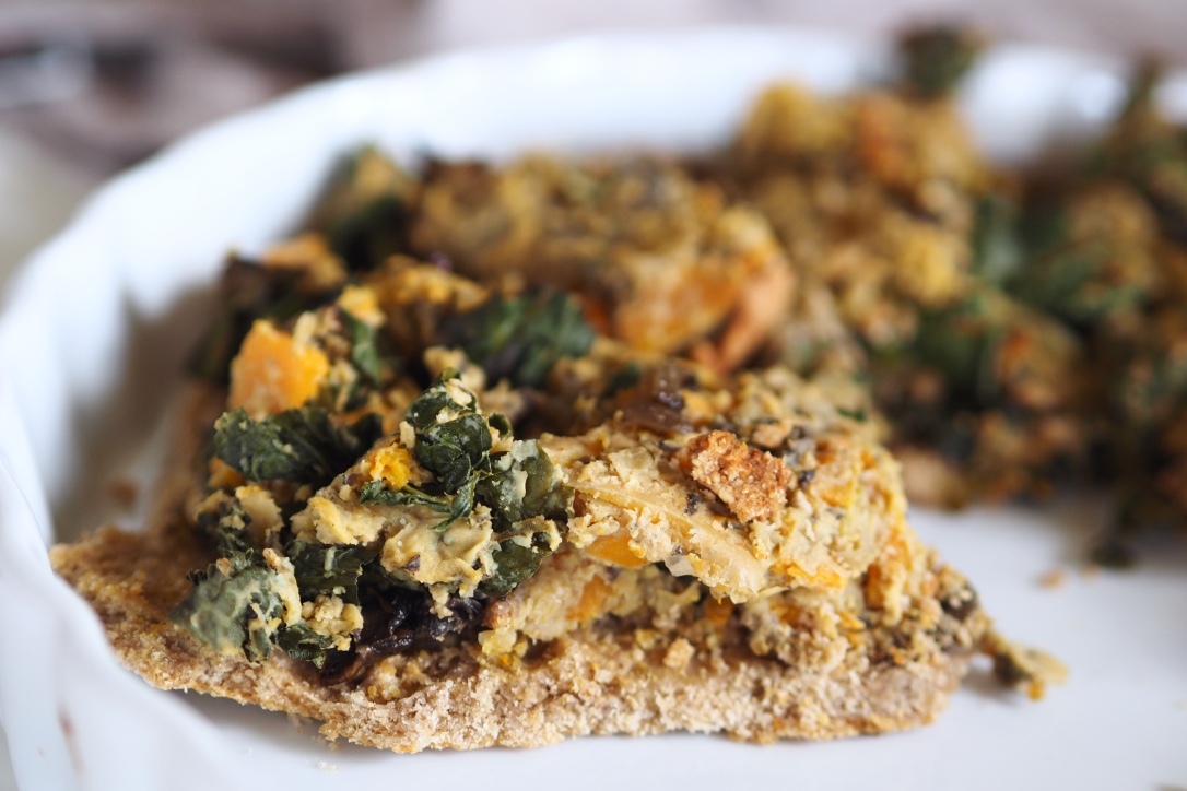 Cheesy Vegan Chickpea, Pumpkin & Kale Tart (+ Wholewheat & Walnut Crust)